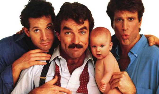 Selleck var som bekant en av de tre männen som plötsligt fick ta hand om en baby i ”Tre män och en baby”, de andra två Steve Guttenberg och Ted Danson.