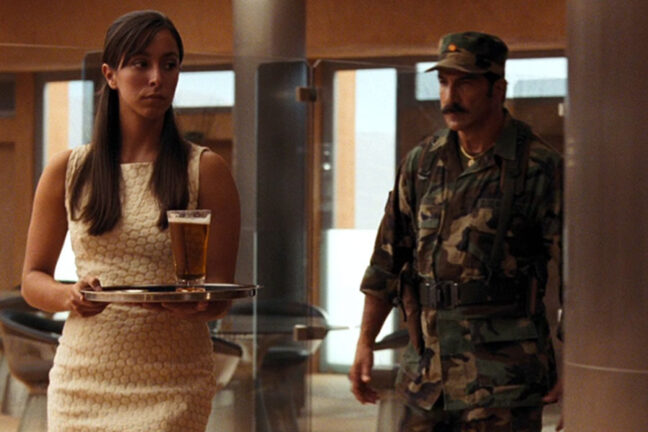 Men en detalj kan vara kul att titta närmare på såhär i efterhand. I en liten roll som receptionist på hotellet Perla de las Dunas syns skådespelerskan Oona Chaplin, blott 21 år gammal när filmen spelades in.