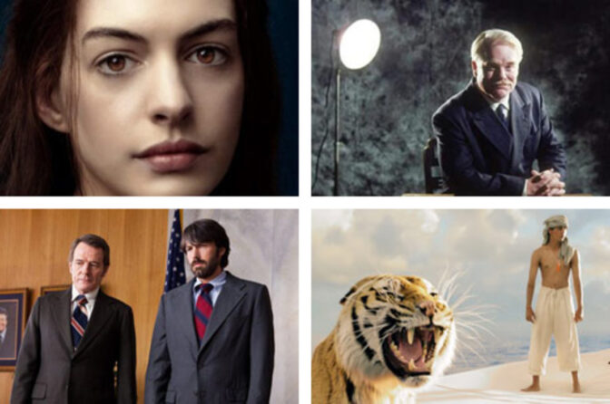 Amour, Anna Karenina, The Dark Knight Rises, Flight, Hobbit, Hyde Park on the Hudson, Mitt längtande hjärta, Moonrise Kingdom, Not Fade Away, Promised Land, Rust and Bone, The Impossible.