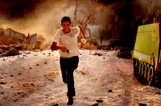 Allt hår på nacken brändes bort. Det var över 1000 liter gasolin som exploderade. Vi filmade i New Mexico med mig ganska nära bomben. Först sprängdes det hundra meter bort, sedan fick jag springa för att bomben intill mig skulle gå av bara sekunder senare. Det tog fem sekunder för hela stan att sprängas, och det var bomben närmast mig som var störst. Ett misstag av killen med handen på avtryckaren, och jag skulle vara död. Det är en otrolig känsla! I love the smell of napalm in the morning… (skratt)