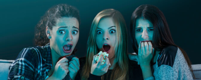 Det har visat sig att vi reagerar likadant på skrämmande situationer i film, som vi gör i verkliga livet. Trots att vi vet att det vi ser inte händer på riktigt, sätts samma processer igång i kroppen som om vi faktiskt hade varit i fara. Hjärnan tror helt enkelt att du behöver springa ifrån Freddy Krueger, eller ta dig ur det hemsökta huset, illa kvickt. Därför sätts stress-systemet i kroppen igång och du kanske spänner musklerna för att snabbt kunna resa dig från biostolen, eller skriker till för att varna andra om faran.