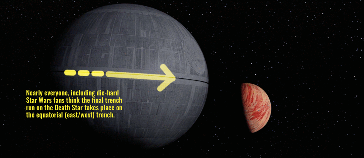 Har du också alltid trott att den där rännan som Luke flyger sin X-Wing i innan han spränger Dödsstjärnan i ”Stjärnornas krig” är den som går likt en ekvator runt rymdstationen? Det är ju trots allt den enda rännan som går att se på bilder, men nu har det visat sig vara en missuppfattning.