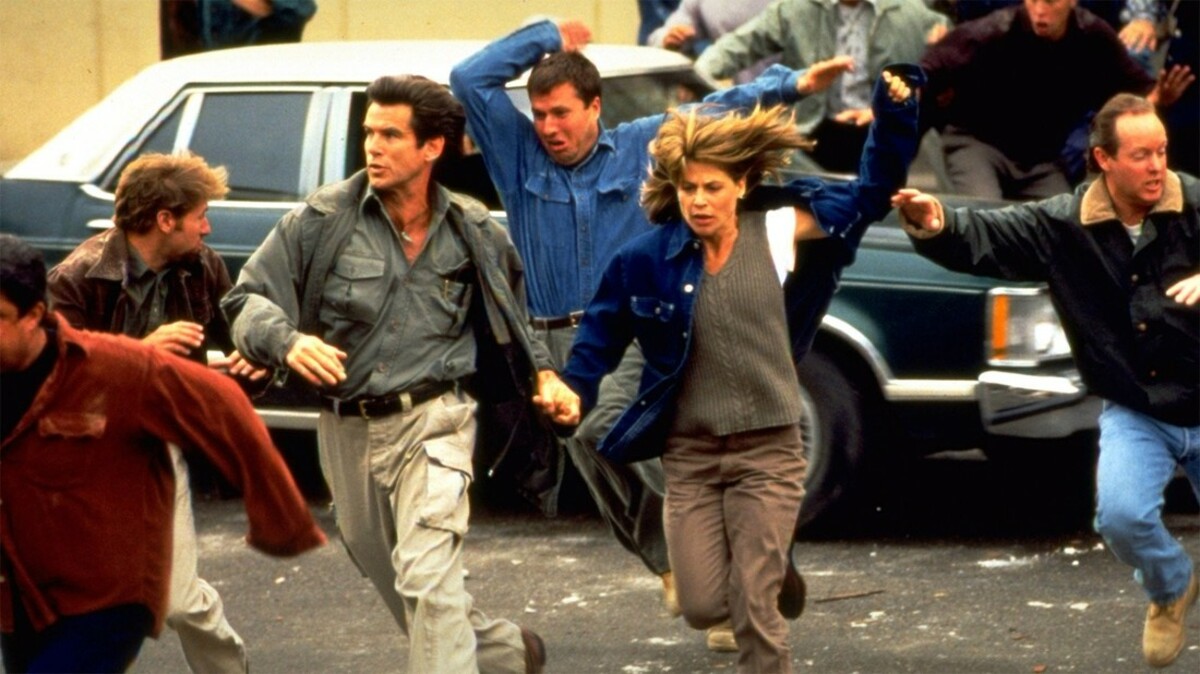 I populära 90-talsrullen ”Dantes Peak” tar Pierce Brosnan och Linda Hamilton en välbehövlig paus från skurkar och Terminators för att fly undan vulkanutbrott. Rena semestern!