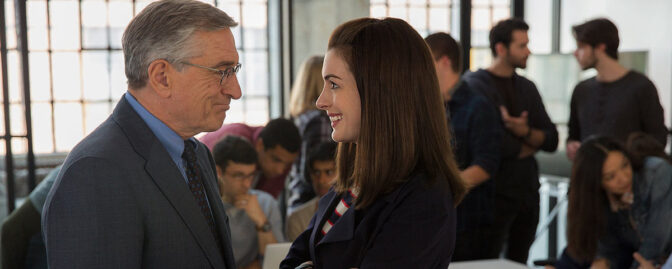 Den pensionerade 70-årige änklingen Ben, spelad av Robert De Niro, bestämmer sig för att ge sig in i arbetslivet än en gång, då han får en plats som praktikant på ett modernt, internetbaserat modeföretag som drivs av den unge, ambitiösa Jules, som spelas av Anne Hathaway. För regin står ingen mindre än Nancy Meyers, som tidigare legat bakom succéer som ”The Holiday” och ”It’s Complicated”.