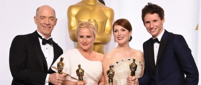 De lyckliga skådespelarna Julianne Moore, Eddie Redmayne, J.K. Simmons och Patricia Arquette är alla förstagångsvinnare.