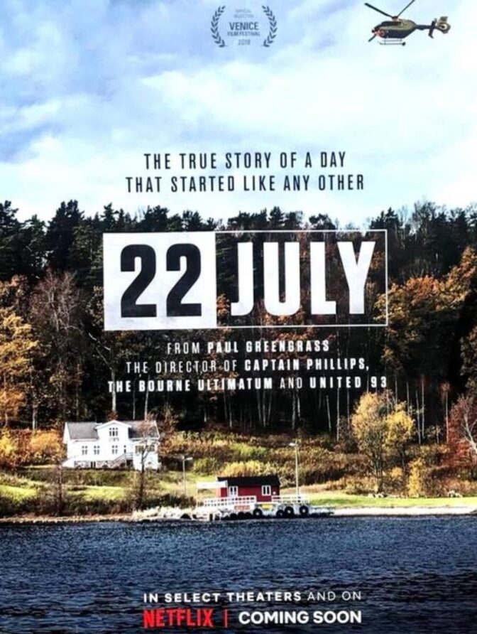 Brittiske regissören Paul Greengrass vill vara respektfull när han skildrar tiden efter attacken och vårt grannlands lidande, med Åsne Seierstads bok ”En av oss” som förlaga. Vi svenskar lär antagligen inte se den på samma sätt som den genomsnittlige, internationelle Netflix-tittaren. Men om man kopplar bort de emotionella minnen som väcks, och ser ”22 July” enbart som en verklighetsbaserad dramathriller, är den inte en av Greengrass bästa. Den känns som en tv-film som pliktskyldigt återberättar ett händelseförlopp med flera inblandade, än en spelfilm med all den spänning, dramatik och känslor som en så pass stark historia borde väcka.