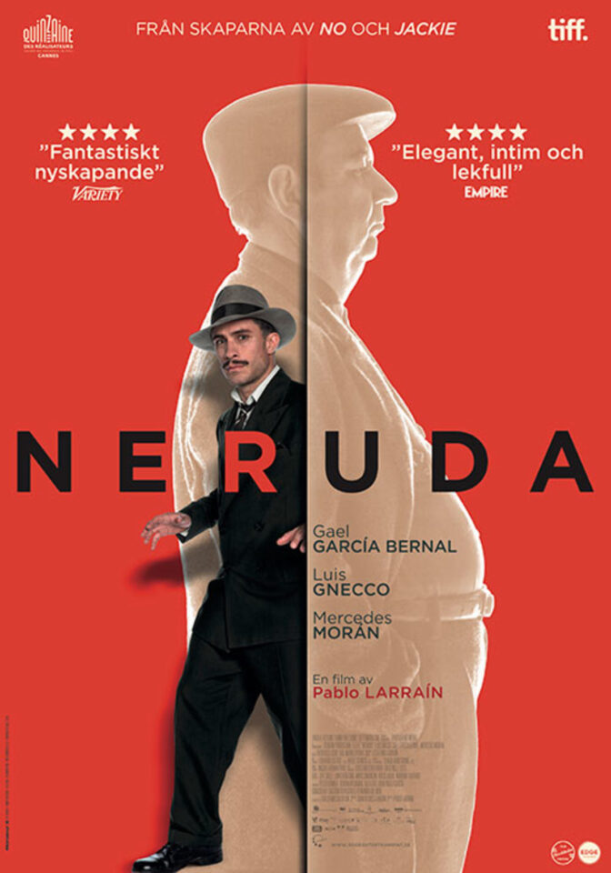”Neruda” utvecklas till en katt och råtta-lek och en sorts platonisk romans växer fram mellan den jagade och den som jagar, det är spännande och sådär skönt westernromantiskt. Larrain är en otrolig regissör som gång på gång lyckas övertyga och hitta sätt att överraska publiken på. Filmen hade kunnat bli en tråkig biografi om ännu en gubbe ur historien men blir istället till en vacker skildring av en man och hans samtid, men ännu mer en fantasifull övning i filmberättandets konst. Larrain nöjer sig inte med att bara visa upp ett öde utan väljer att väva in poesi som vore filmen samtidigt ett pågående verk av personen den handlar om. Vilket också är det som gör detta till ett otroligt imponerande stycke filmskapande istället för bara en väldigt bra film.