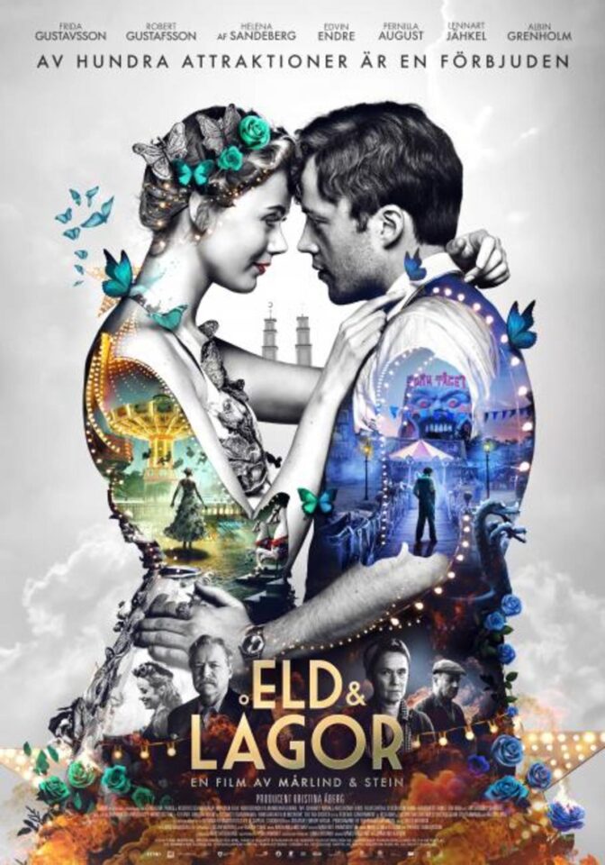 ”Eld & lågor” är en verklighetsbaserad, skildring av den förbjudna romansen mellan flickan från den förnäma överklassen och pojken från ”tattarfamiljen”. Städade Gröna Lund expanderar med fina karuseller, medan slitna Nöjesfältet står i skulder över öronen. Andra världskriget härjar i bakgrunden men på Djurgården utspelas ett helt annat slags krig, det mellan två nöjesparker och deras bittra ägare. John och Ninni är i högsta grad involverade i konflikten, och uppmanas att spionera och sabotera sedan de var små. Nu är båda i tjugoårsåldern, och börjar se på varann i nytt ljus.