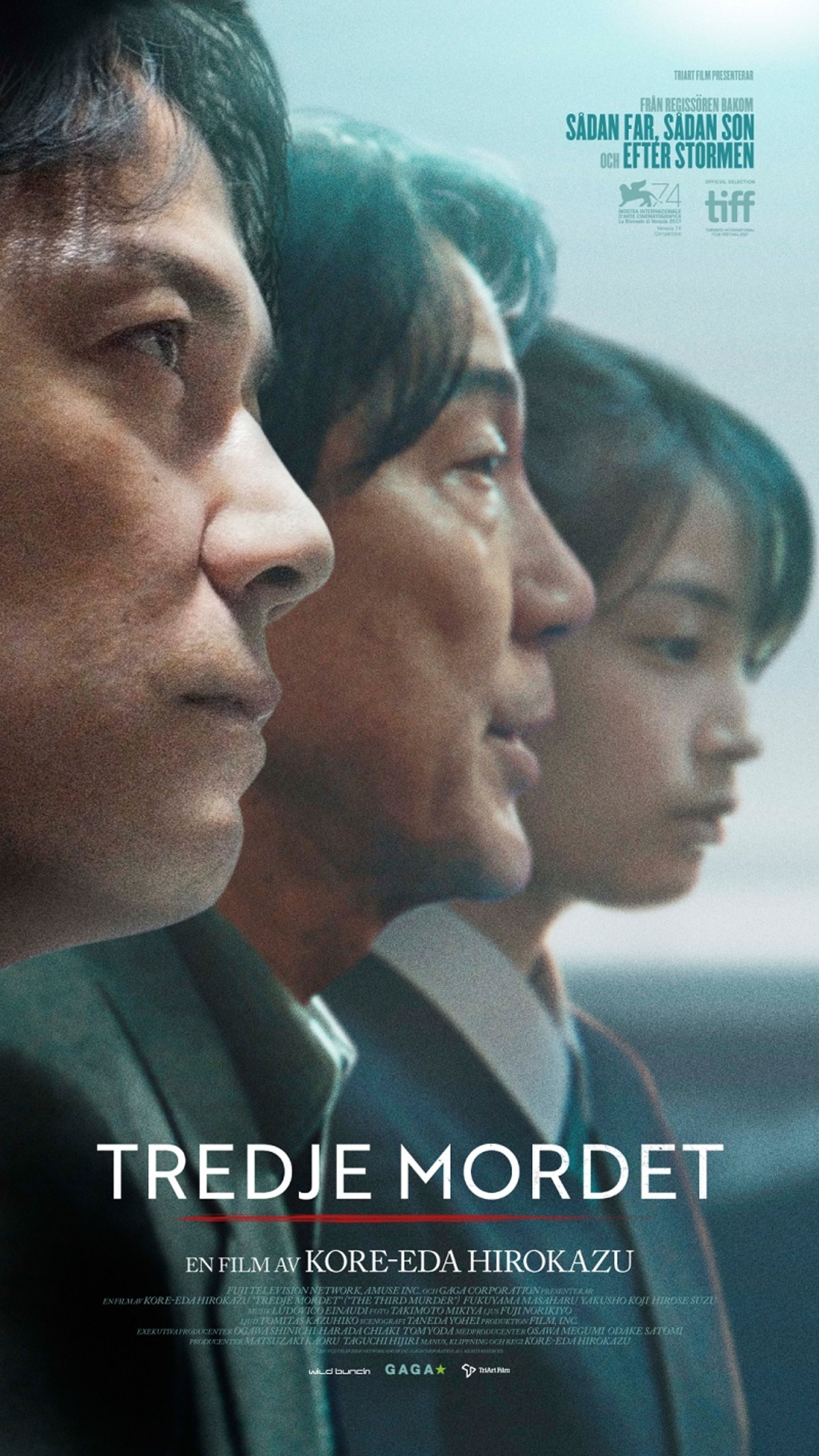 Motivet med en cynisk jurist som plötsligt börjar jaga efter Sanningen mot bättre vetande är välbekant från en ungefär en miljon Hollywood-filmer. Ändå är den första akten av ”Tredje mordet” trollbindande i all sin anspråkslöshet. Shiguri och hans kollegor går sakligt och metodiskt tillväga, och varje ny vänding i fallet behandlas med stor trovärdighet. En sofistikerad pusseldeckare som väjer för billigt chockvärde, där mystiken hela tiden tätnar utan att spåra ur. Huvudpersonens alltmer personliga engagemang i den enigmatiske trippelmördaren smyger sig på både honom själv och oss som tittar.