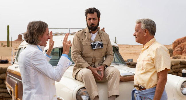 ”Asteroid City”-stjärnorna Tom Hanks, Scarlett Johansson och Jason Schwartzman berättar om arbetet med den hyllade nya komedin i 1950-talsmiljö.