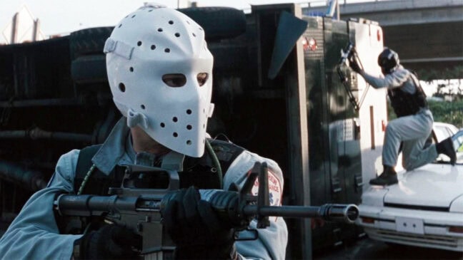 Arnold Schwarzenegger kämpar för sitt liv i världens dödligaste TV-program i kultklassiker ”The Running Man” från 1987.